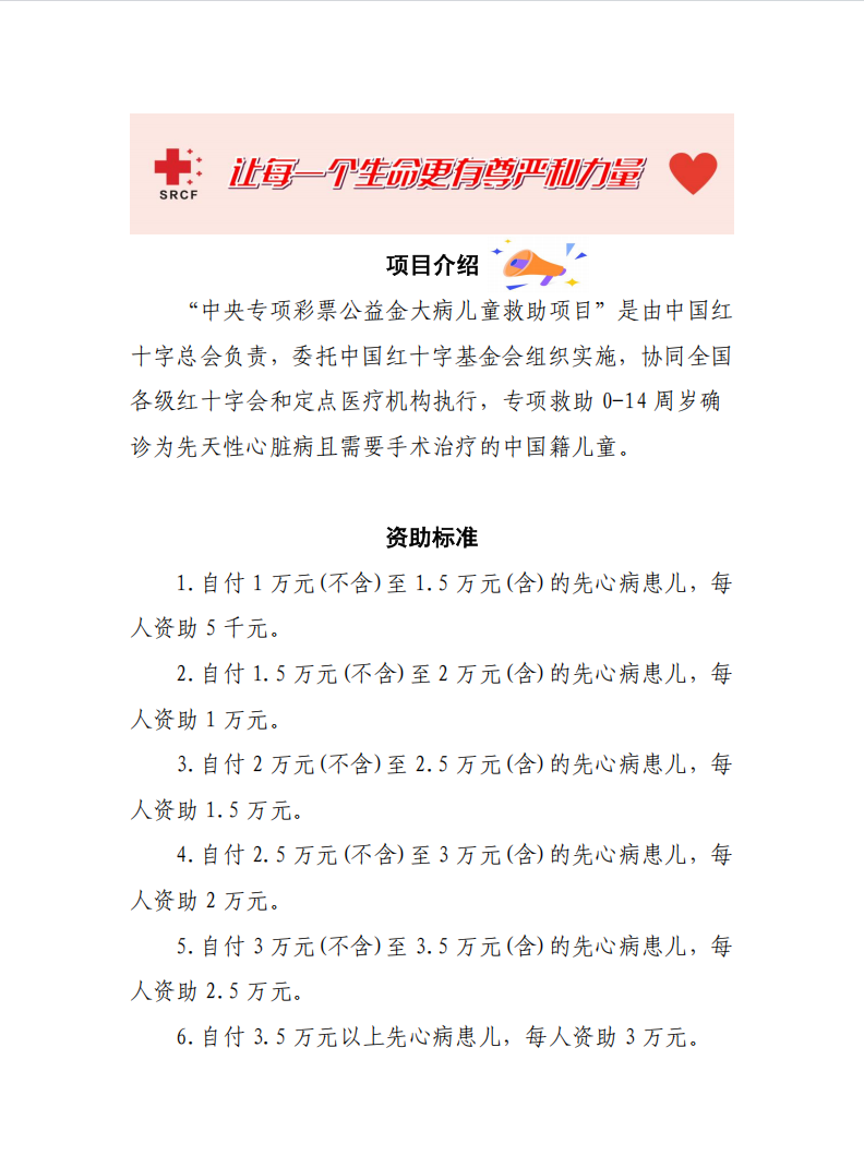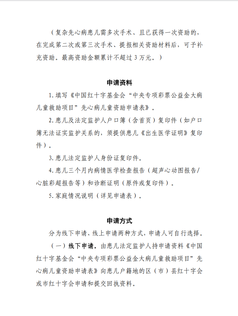 中央专项彩票公益金大病儿童救助项目—先心病救助申请指南