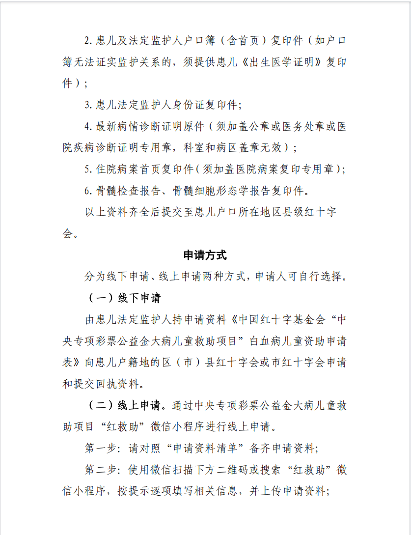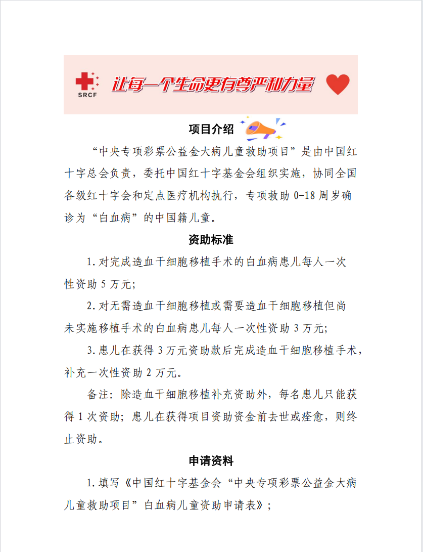中央专项彩票公益金大病儿童救助项目—白血病救助申请指南
